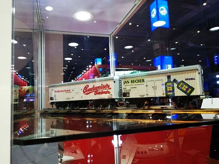捷克的工业在国家馆的捷克展台,用模型的形式在橱窗做展示